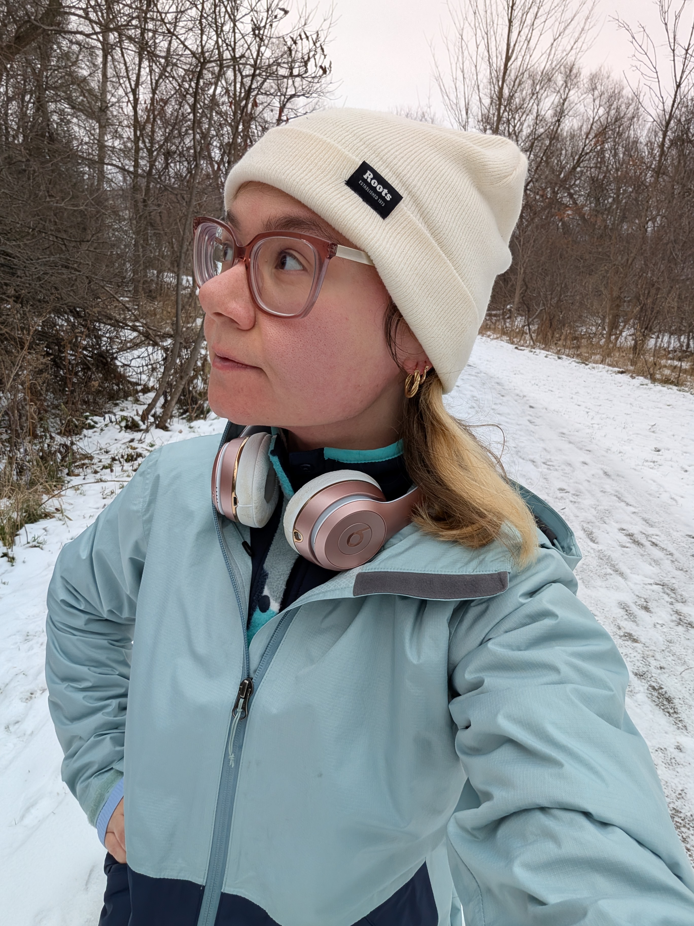 I’ve also put together a winter running uniform. For tops, I wear a long-sleeved base layer (I’m a fan of the Fluid Seamless Fitted Tops from Old Navy, Momentum Seamless Tops from Athleta, and the Uniqlo Heattech line), a fleece insulating mid-layer, and a wind- and water-resistant shell jacket (I’ve been wearing the MEC x AQUANATOR Rain Jacket from MEC). For bottoms, I wear thermal leggings (my favourites right now are Uniqlo Heattech Active Leggings and Lululemon Fast and Free High-Rise Thermal Tights). For accessories, I wear a toque, gloves and a neck gaiter. I’ve been mixing and matching the pieces to suit the weather conditions- sometimes, it’s been warm enough that I haven’t needed the fleece or all of the accessories.